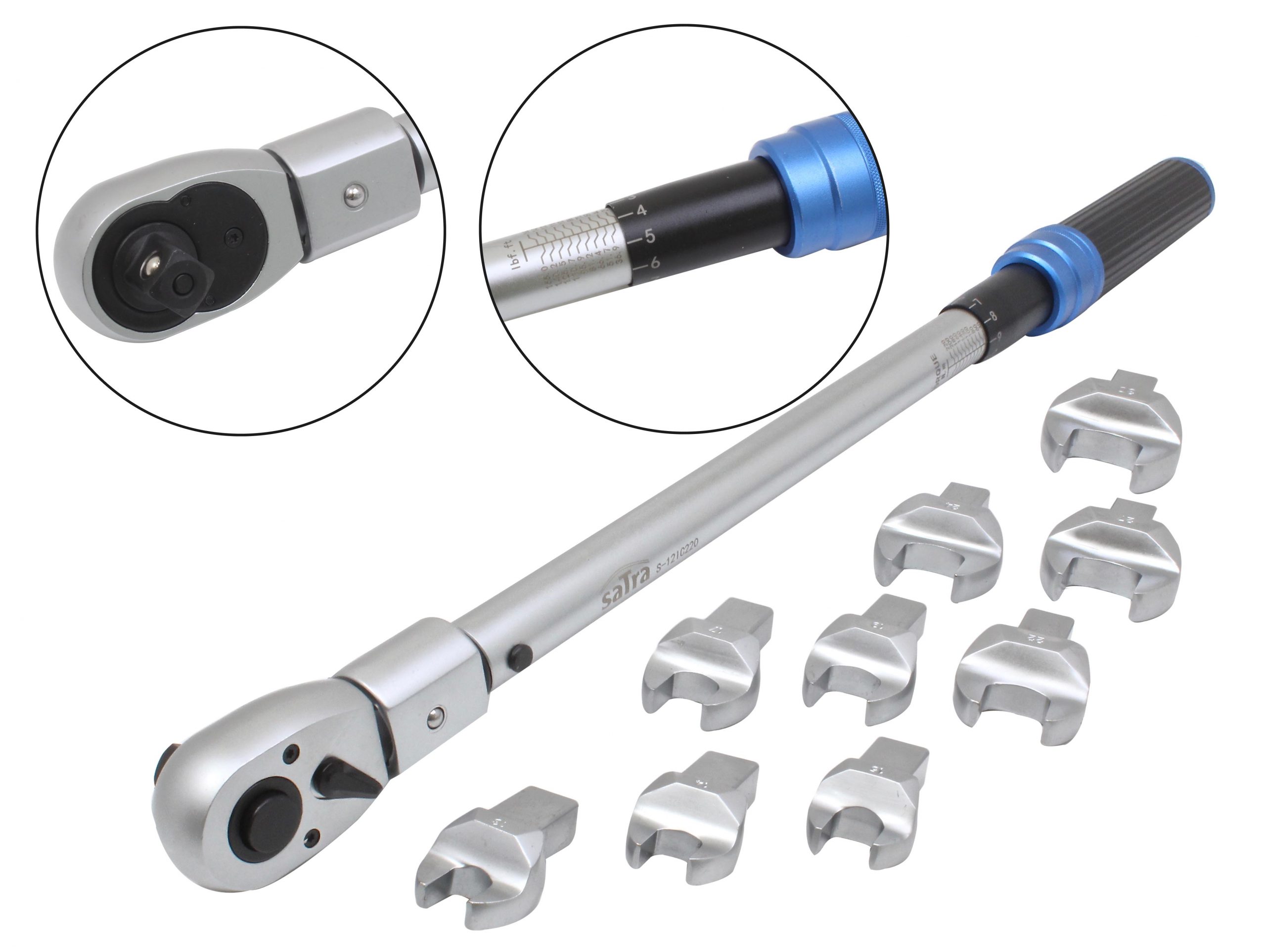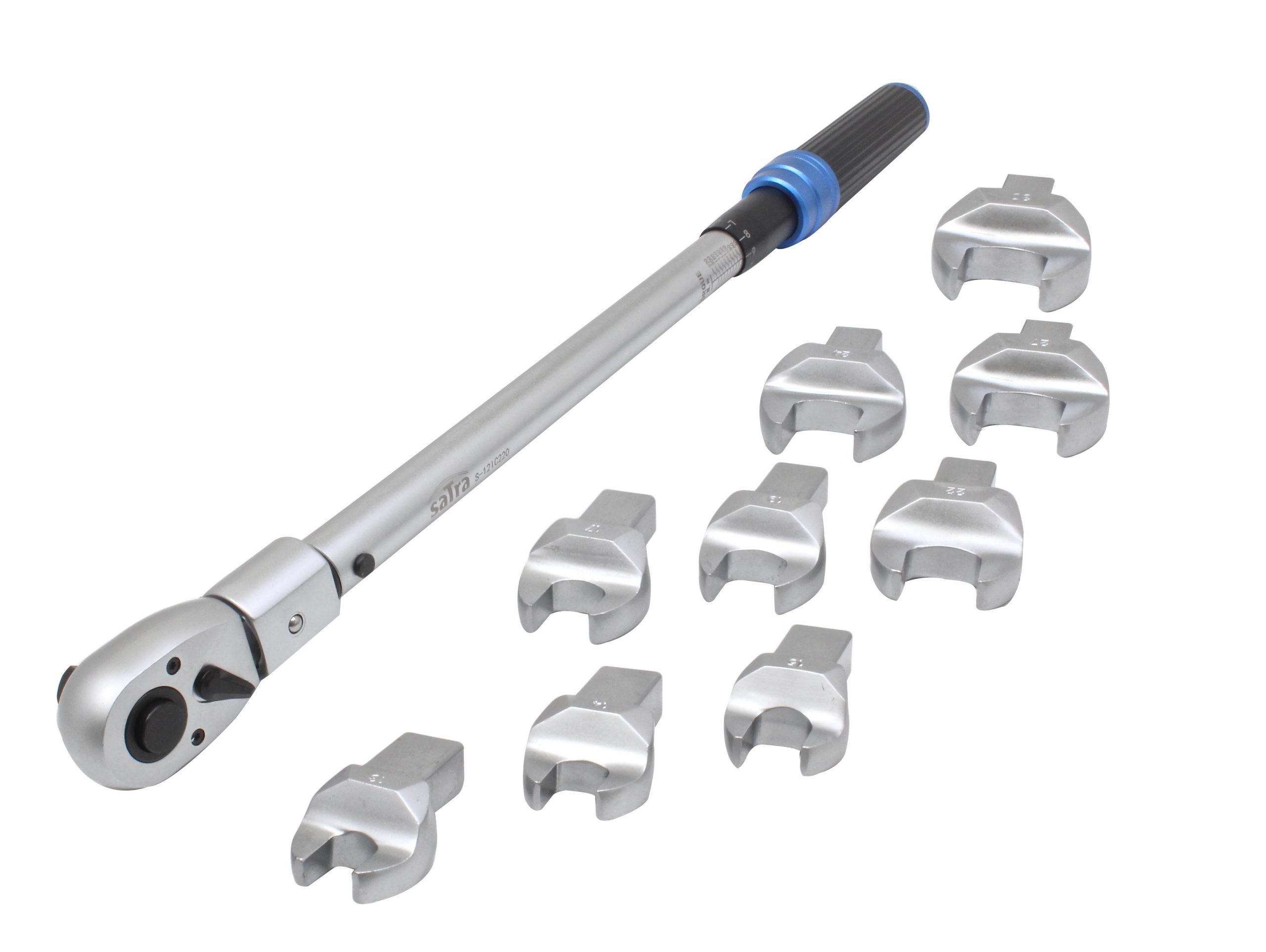Końcówki płaskie dodane do zestawu umożliwia dokręcanie śrub do których nie ma możliwości podejścia od góry aby zadać odpowiedni Nm.