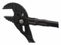 Bezpieczne zablokowanie zamka na sworzniu zawiasu zapobiega przypadkowemu przestawieniu szczypiec.