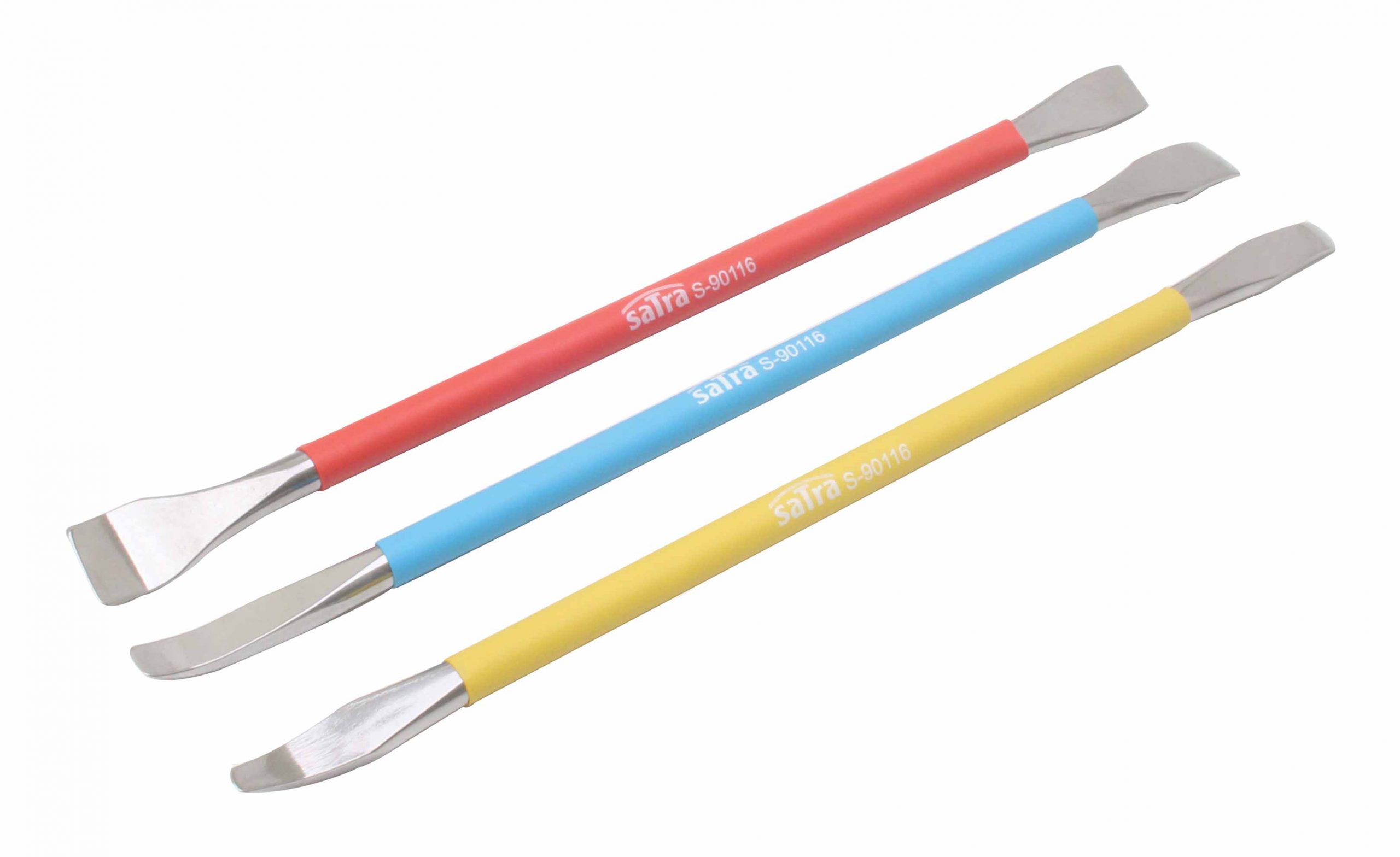 Zestaw precyzyjnych dwustronnych dźwigni ze stali nierdzewnej przeznaczonymi do demontażu plastików, okładzin wewnętrznych, zaślepek itp.
