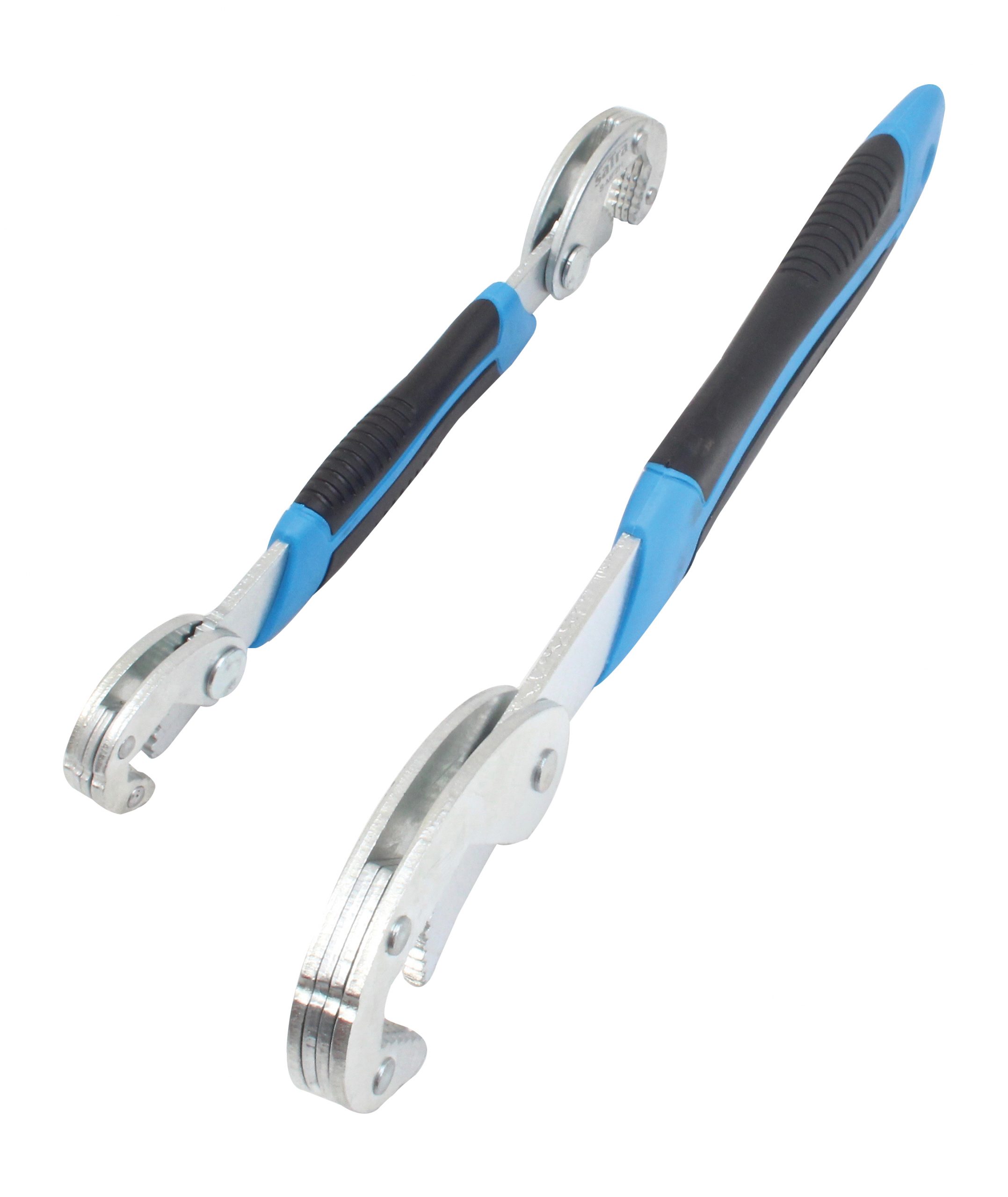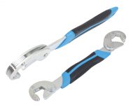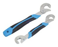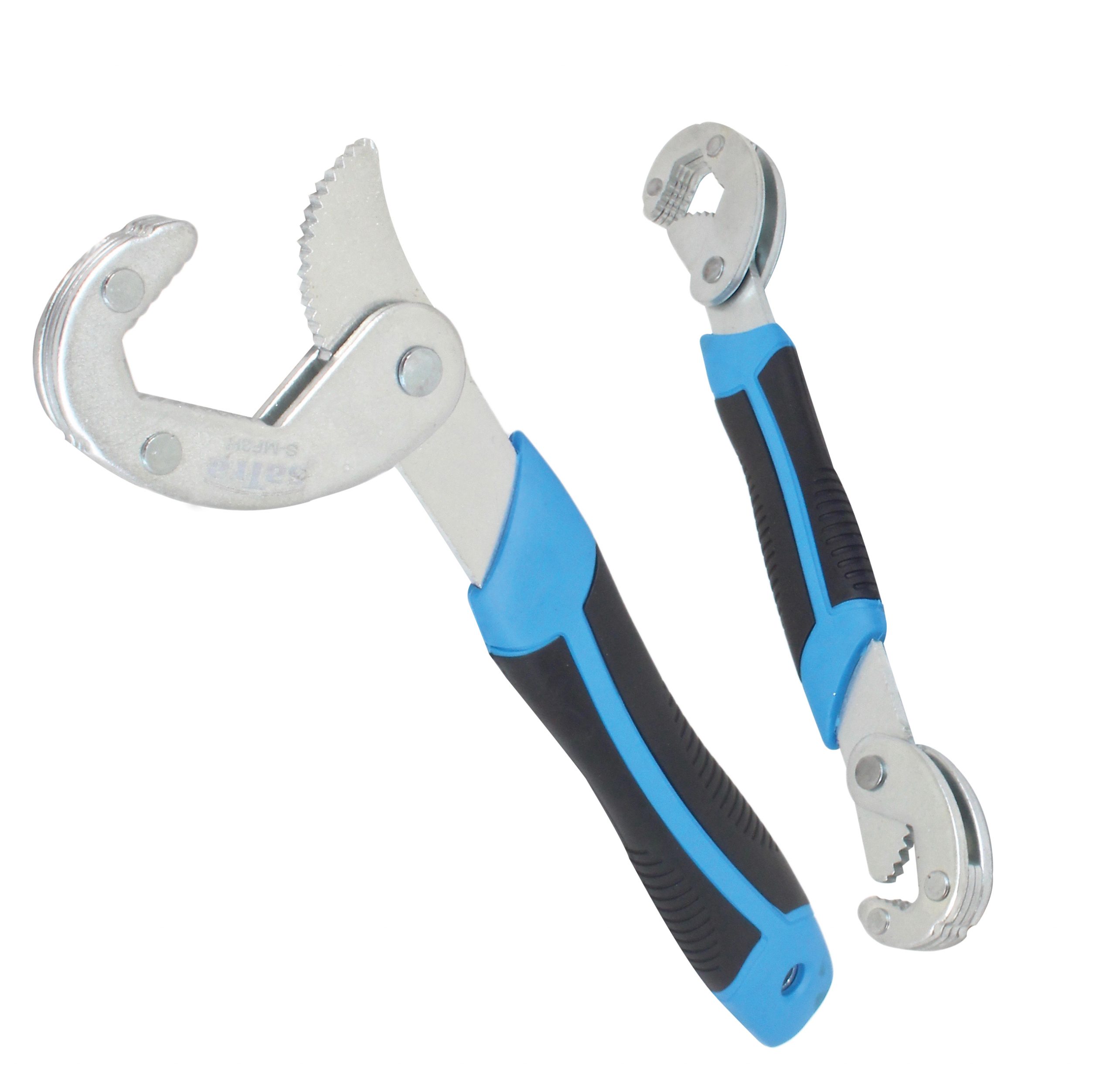 Wielofunkcyjne klucze nastawne marki SATRA samoczynnie dopasowują się do odpowiedniego rozmiaru nakrętek i śrub oraz do chwytania okrągłych przedmiotów, złączy węży lub armatury.
