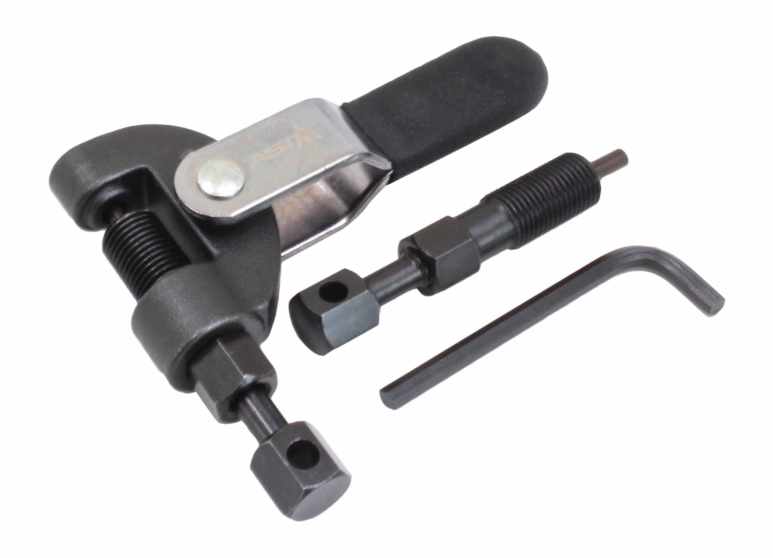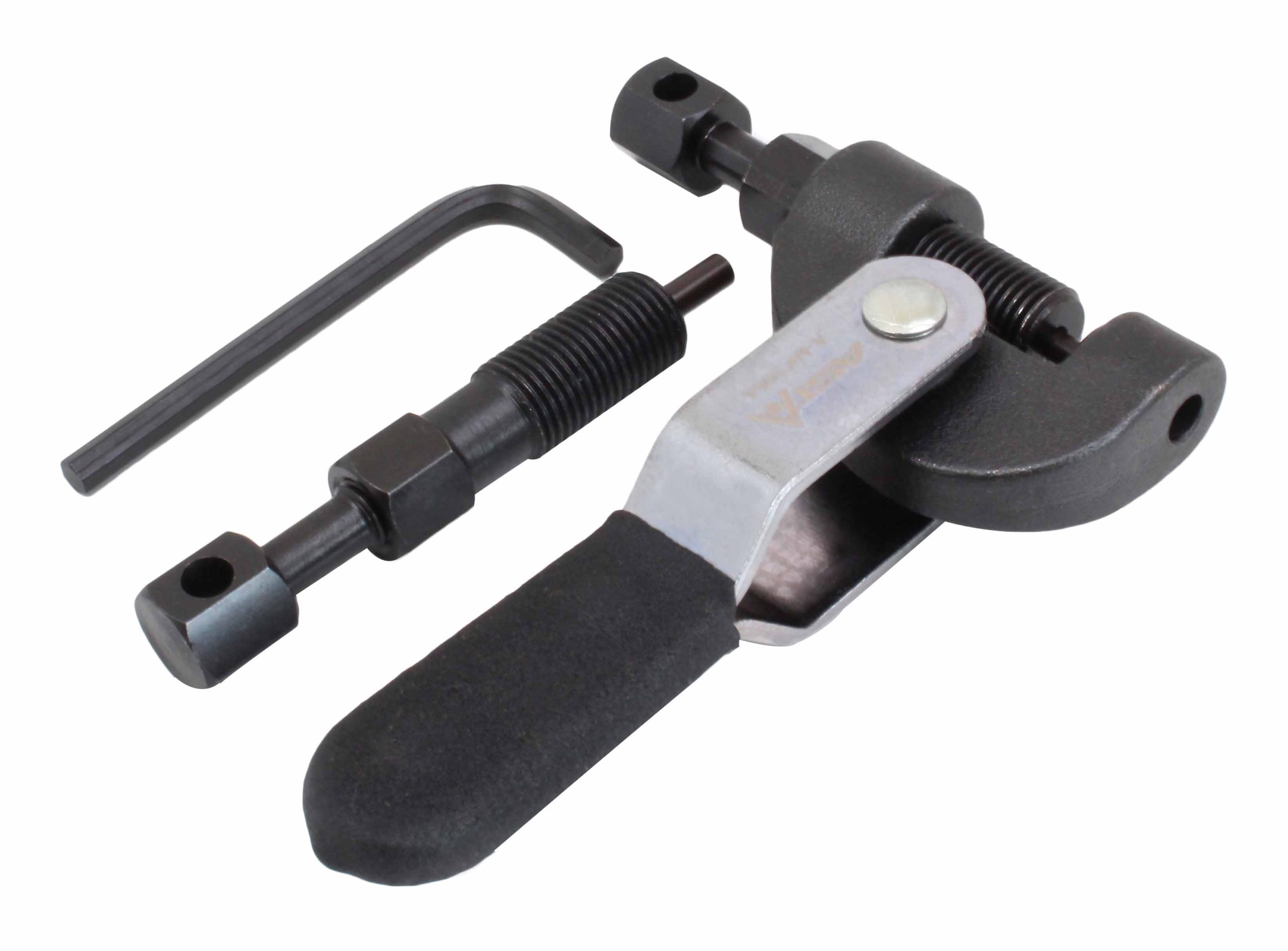 Niezbędne narzędzie stosowane do rozkuwania łańcucha motocyklowego o rozmiarach od 420 do 620. Uchwyt można złożyć, aby ułatwić przechowywanie. W zestawie znajdują się dwa utrwadzane kołki ośr. 4.0 oraz 4.8mm