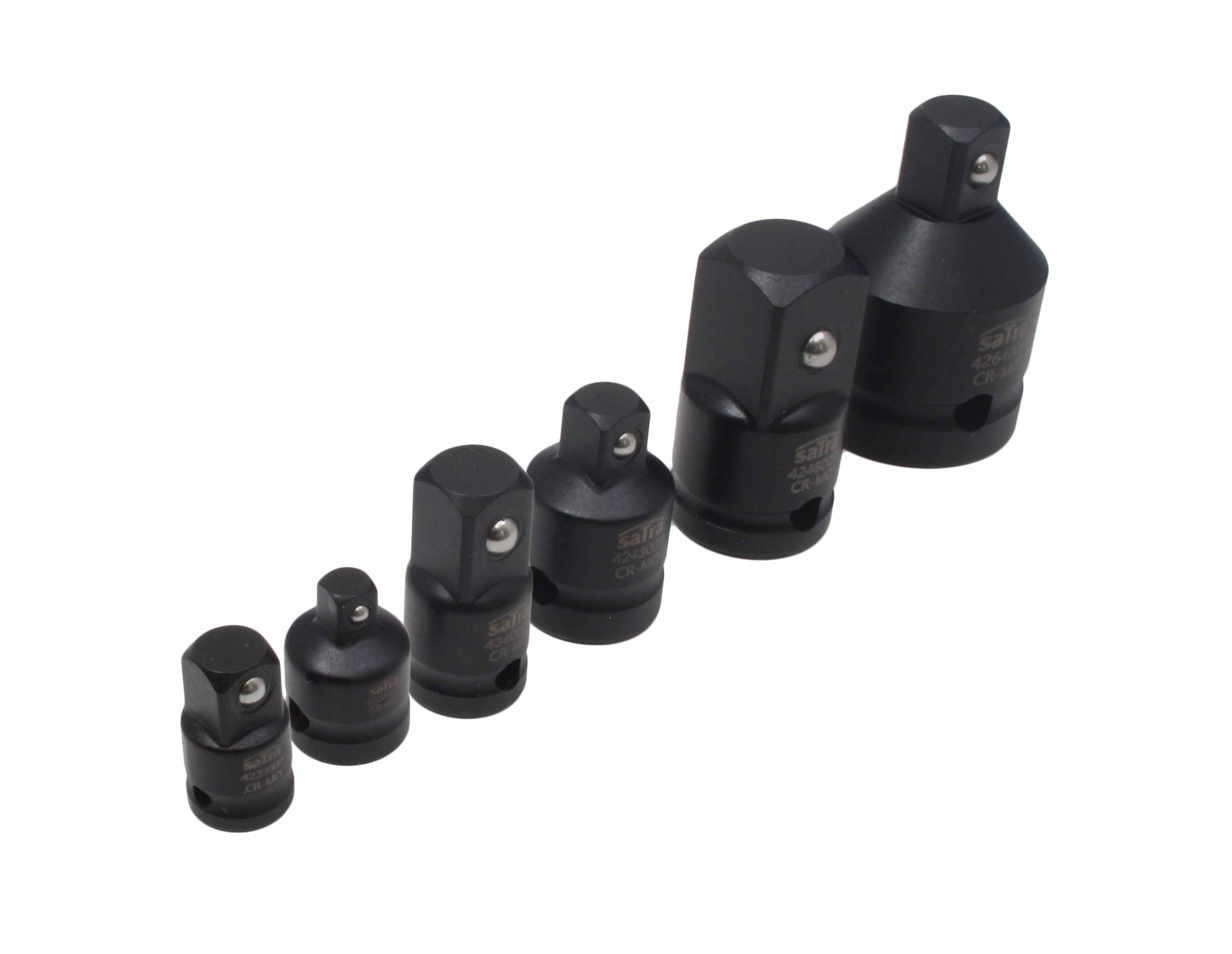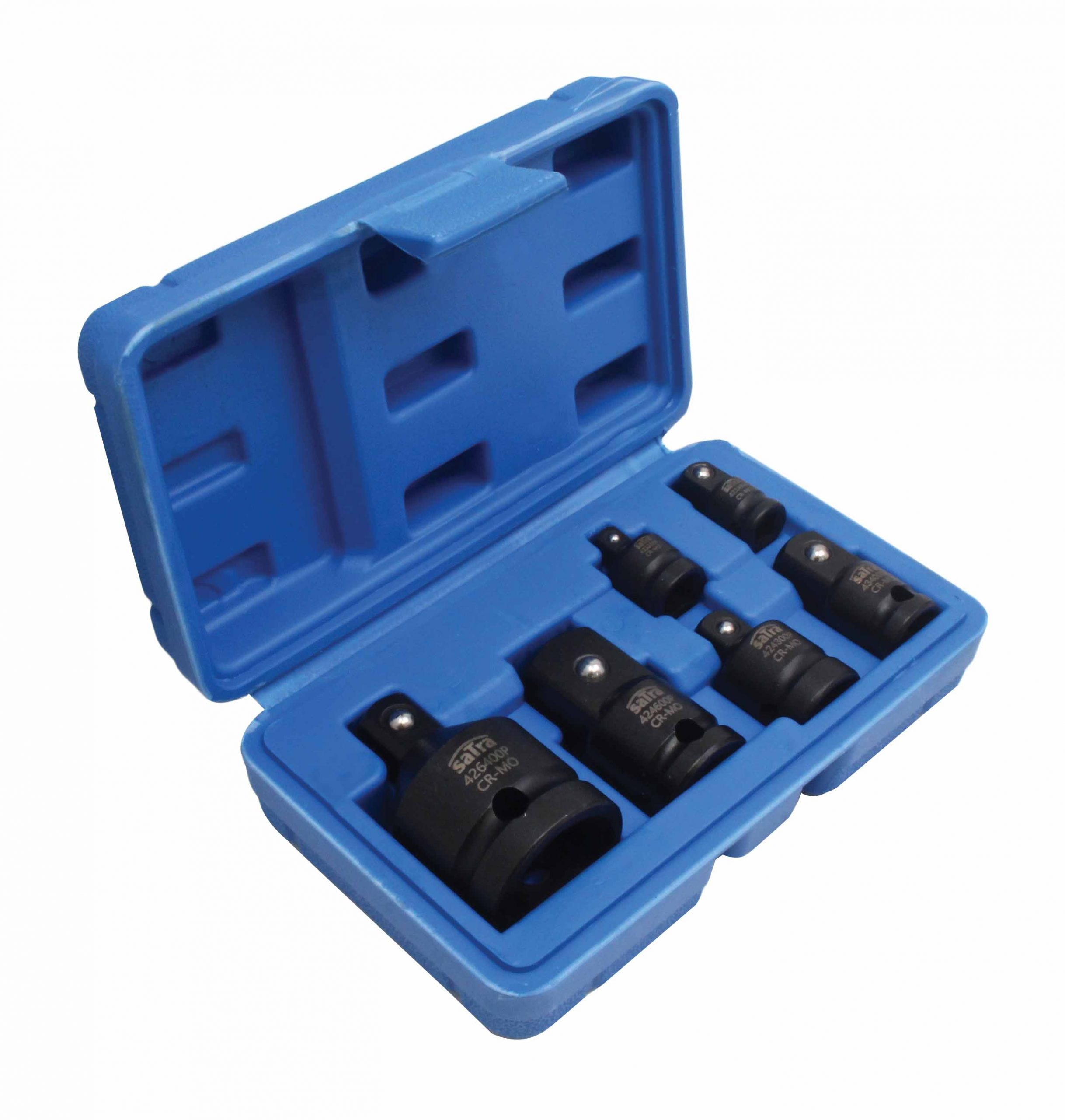 Zestaw składa się z kilku różnych adapterów, które pozwalają na zmianę rozmiaru trzpienia z większego na mniejszy i odwrotnie, co zwiększa ich wszechstronność.