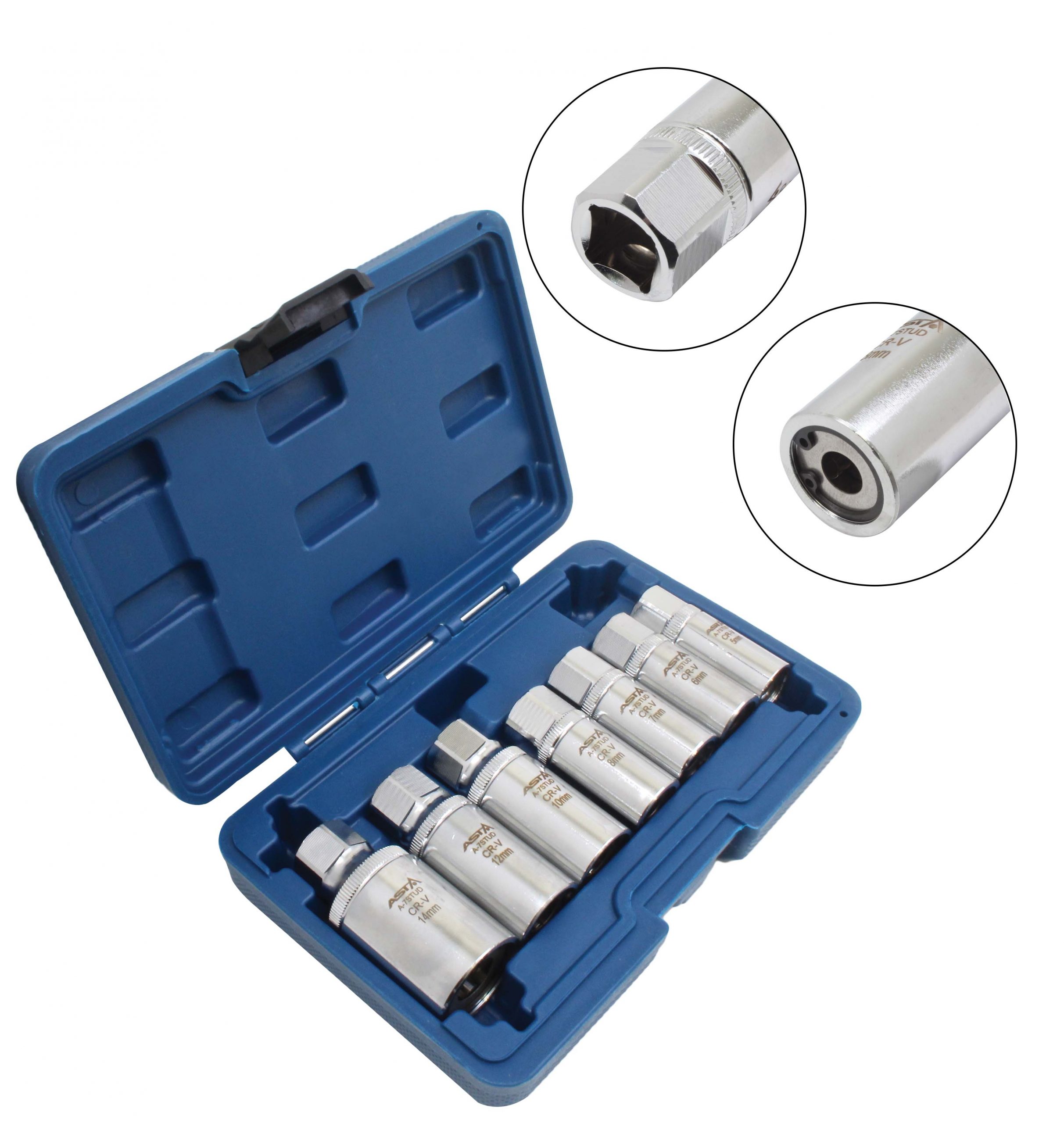 Zestaw 7specjalistycznych nasadek do szpilek gwintowanych: