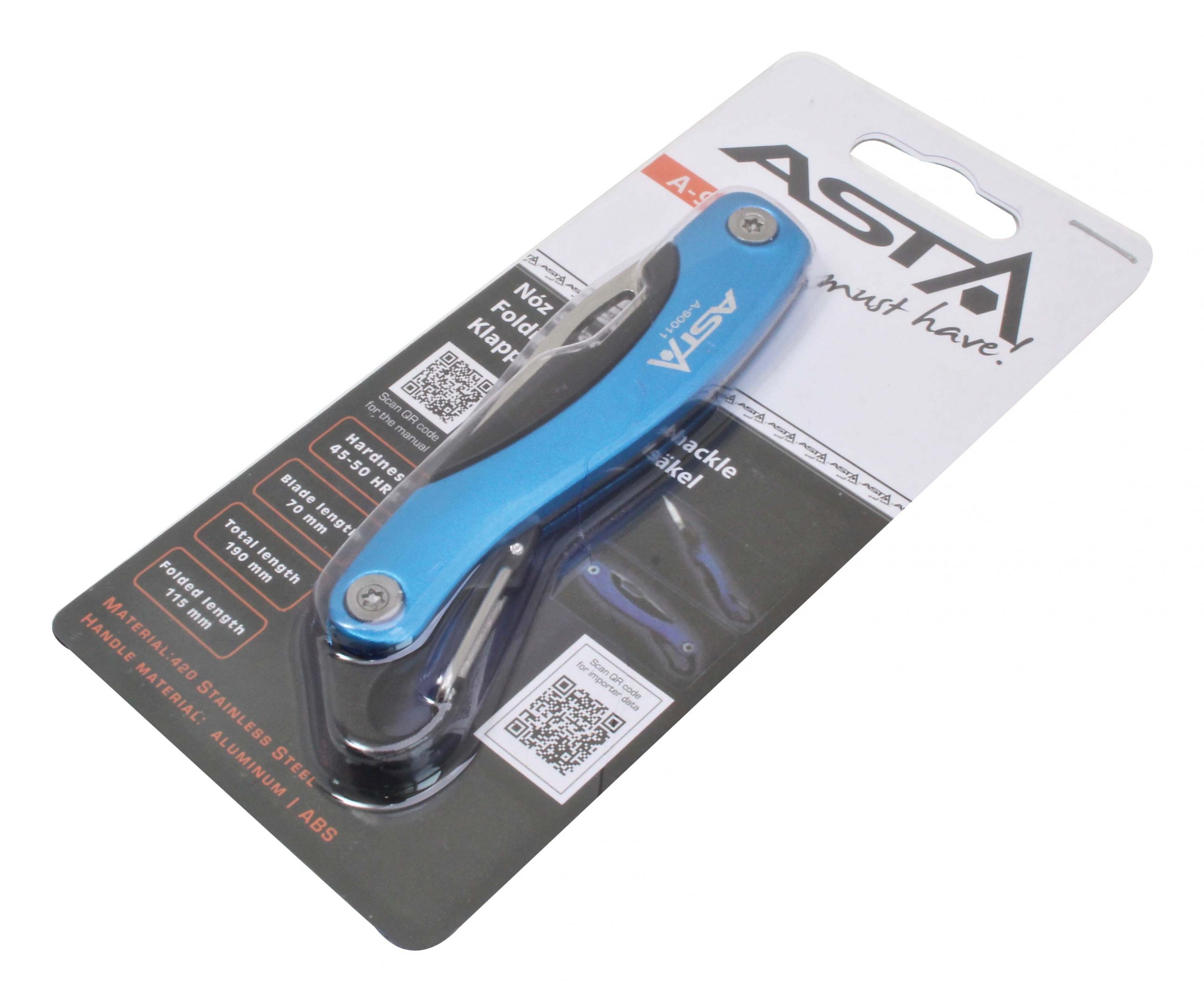 Lekki, poręczny oraz niewielkich rozmiarów składany nóż marki ASTA posiadający ostrze o długości 70mm które zostało wykonane ze stali nierdzewnej.