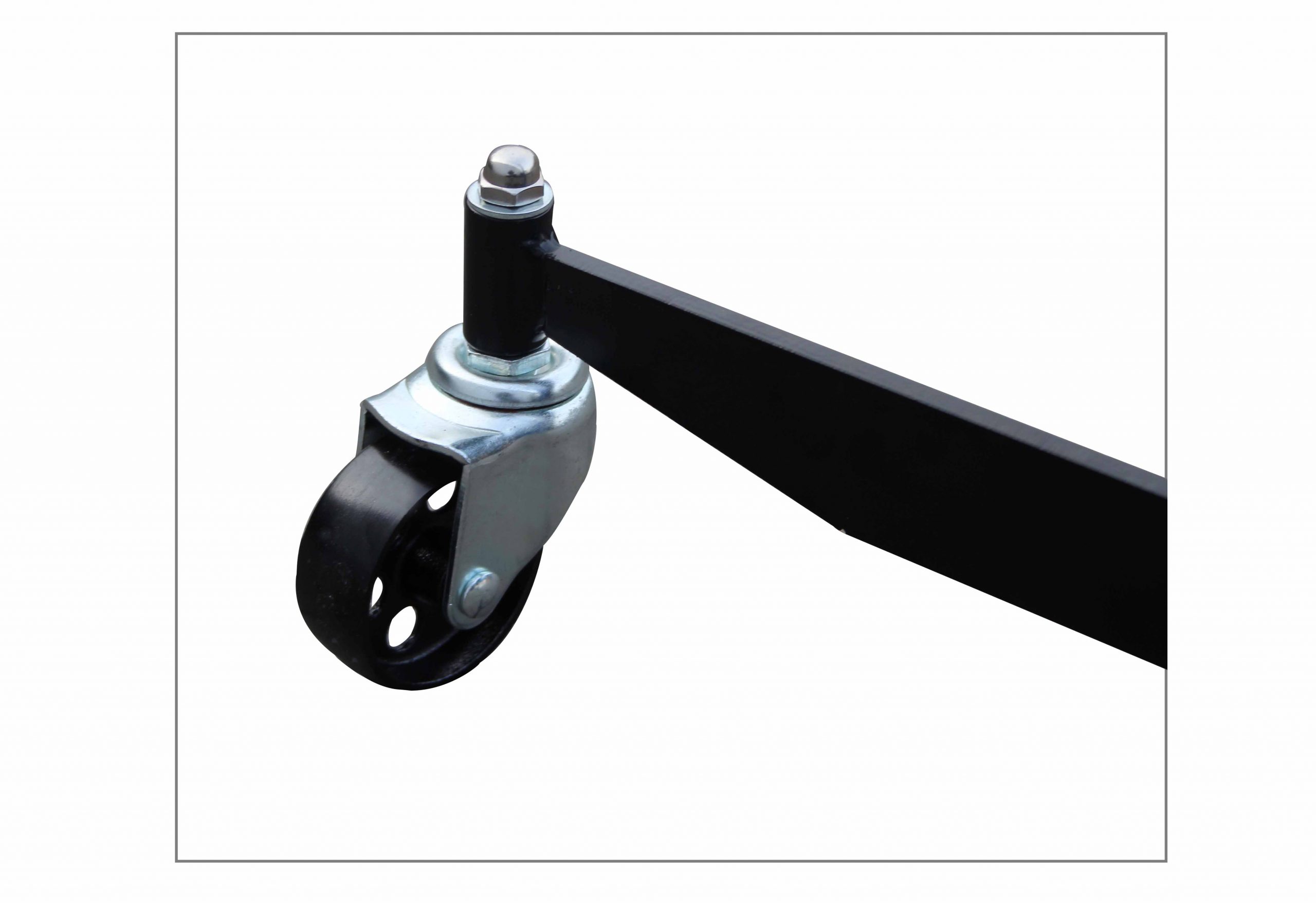 - Cztery obrotowe kółka o śr. 75mm gwarantują pełną mobilność i zwrotność, umożliwiając łatwe manewrowanie podnośnikiem w obrębie warsztatu.