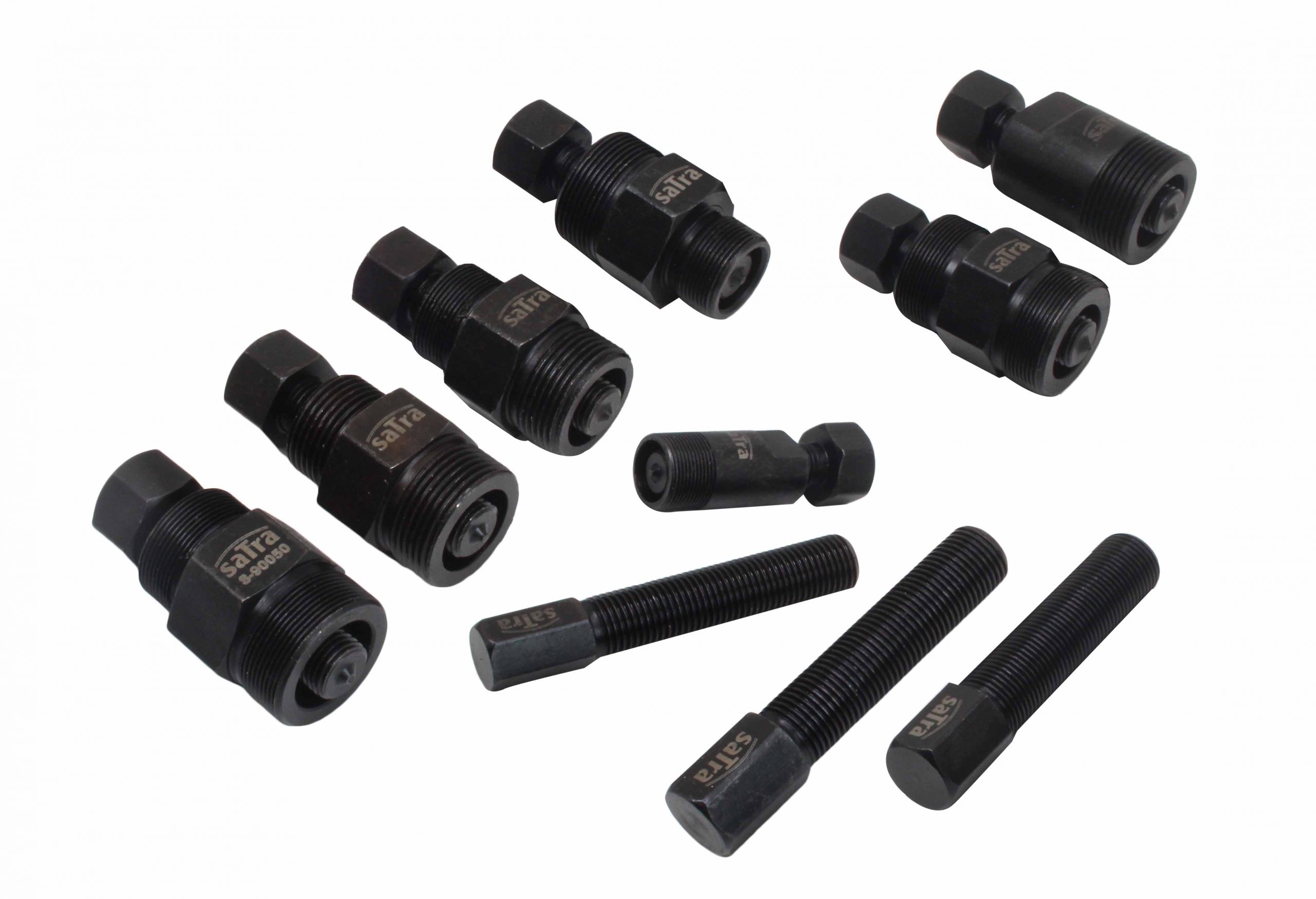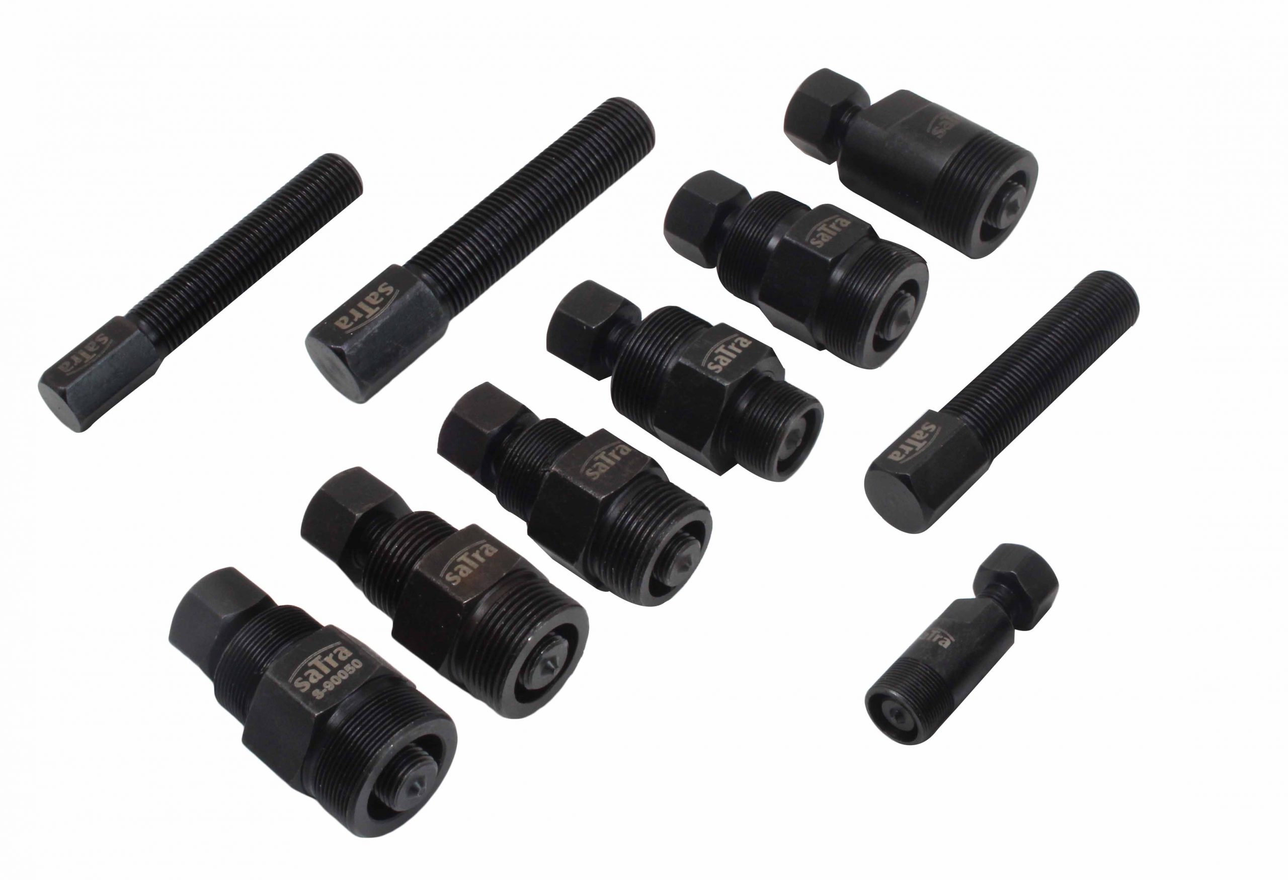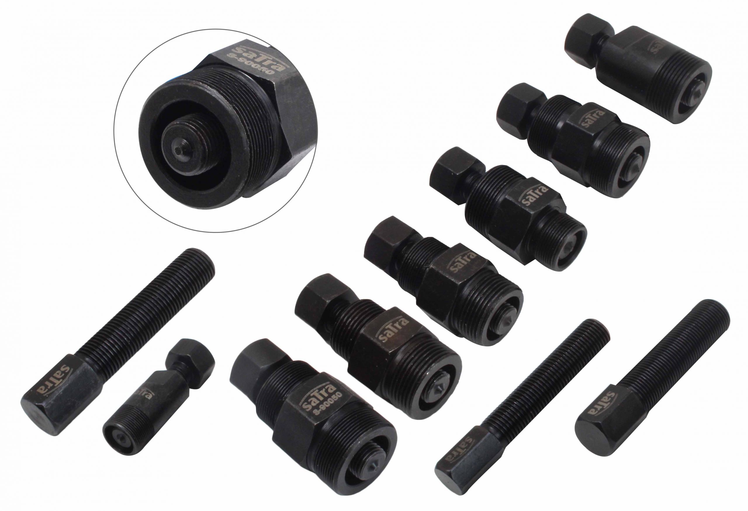 Obszerny zestaw ściągaczy koła zamachowego do oddzielania koła zamachowego od stożka wału korbowego.