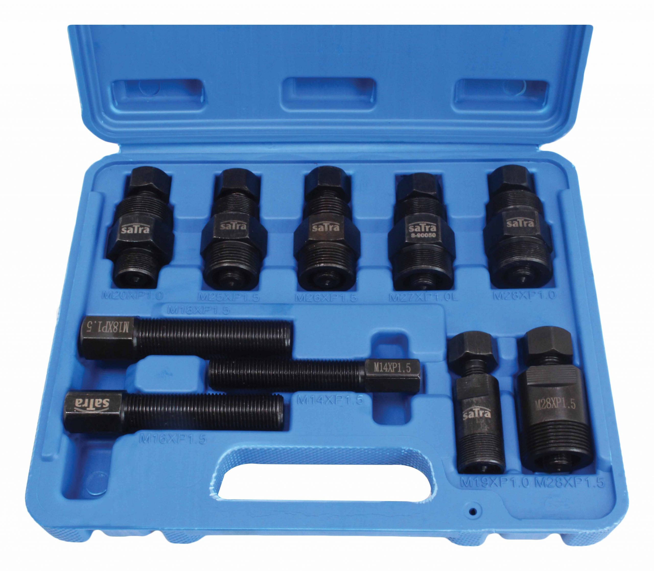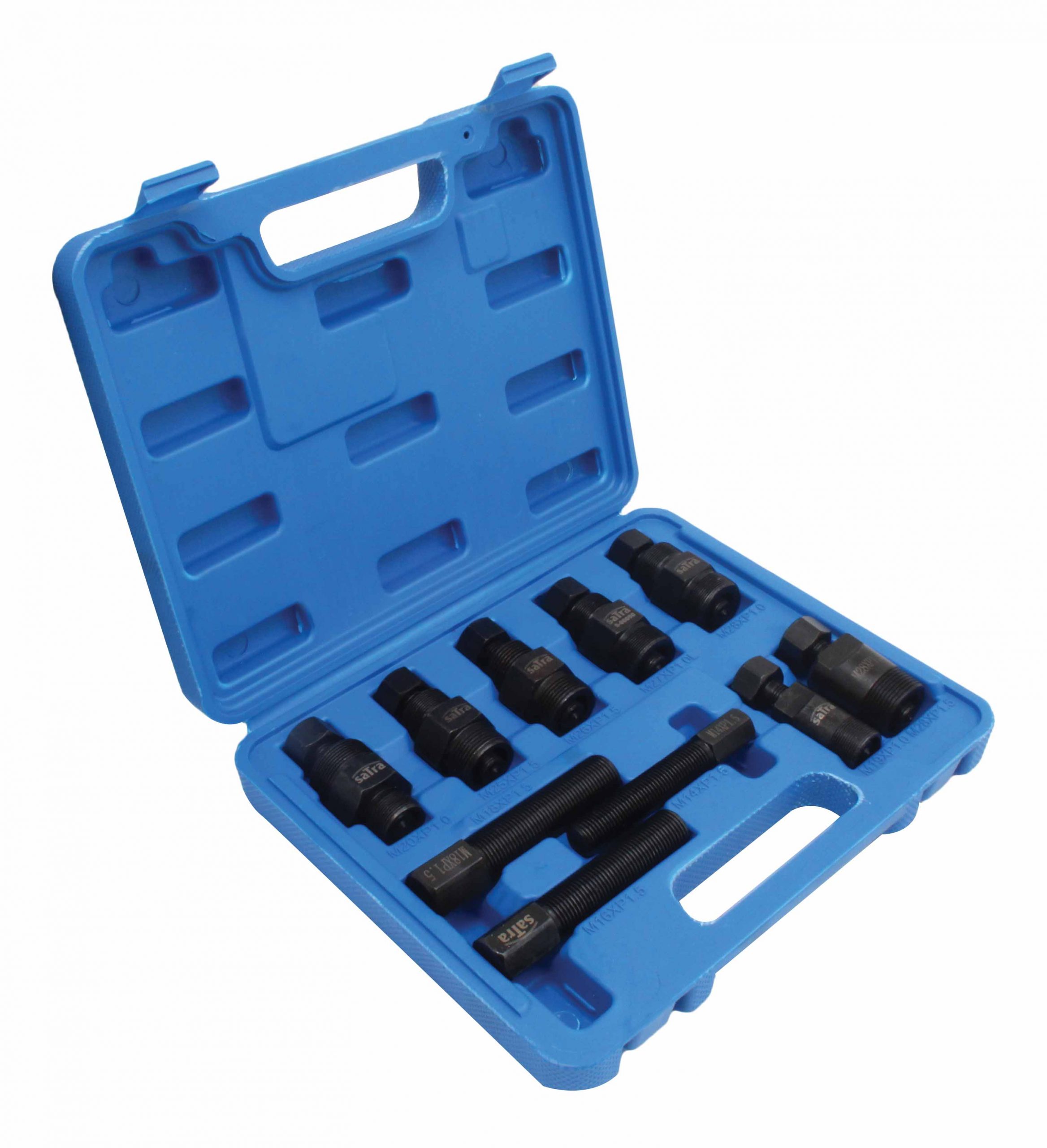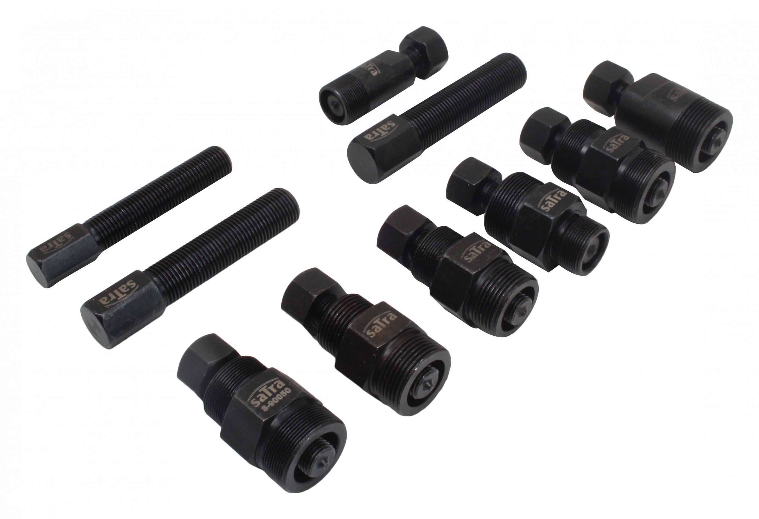 Obszerny zestaw ściągaczy koła zamachowego do oddzielania koła zamachowego od stożka wału korbowego.