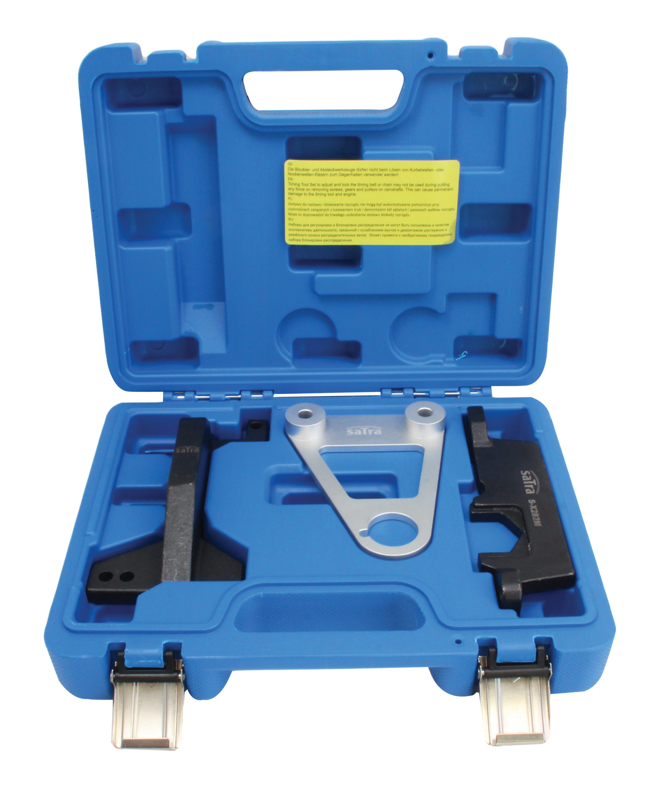 Zestaw blokady rozrządu marki SATRA przystosowany do wymiany łańcucha rozrządu w 4-cylindrowych silnikach benzynowych posiadających podwójny wałek rozrządu.